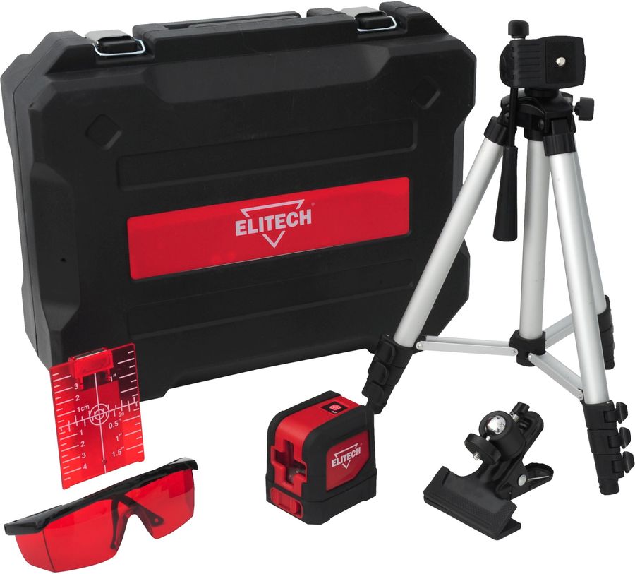 Лазерный уровень "ELITECH" ЛН 3К (IP54, комплектация: зажим, мишень, очки, уровень, штатив 1,2м) СТОП ЦЕНА