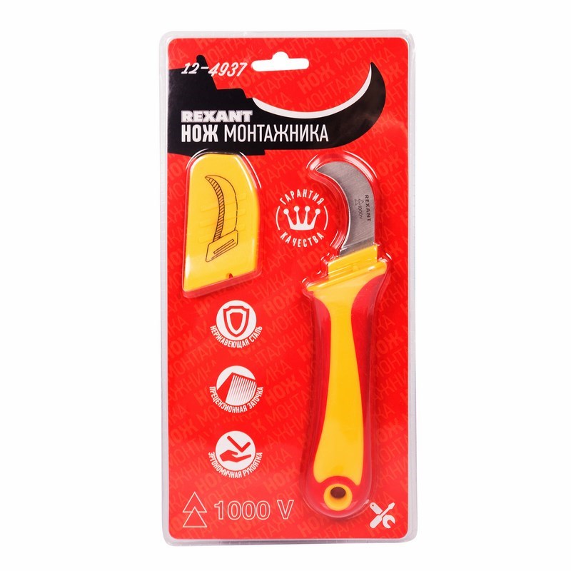 Нож монтажника нержавеющая сталь изогнутое лезвие Rexant
