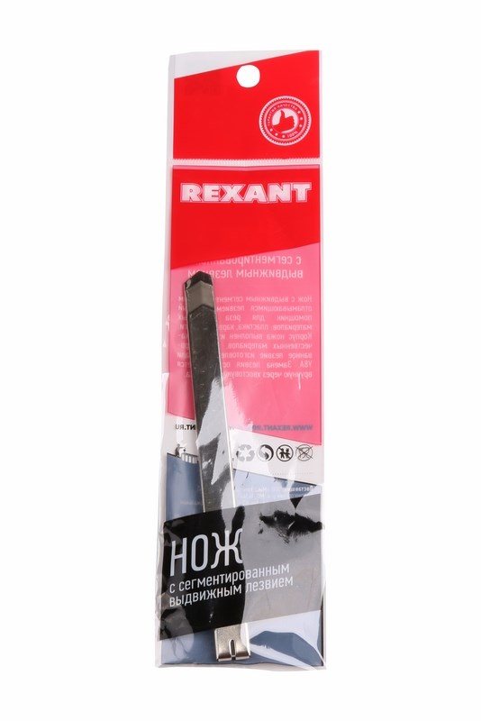 Нож REXANT с выдвижным сегментированным отламывающимся лезвием — отличный помощник для разрезания различных материалов: пластика, картона, бумаги.