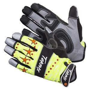 Перчатки ELEMENTA SPARK TEKNIX, высокопрочный микрофибра, ткань спандекс, антивибрационные накладки на ладони, лайм светоотражающие нашивки, велкрозастёжка, кевларовое усиление р.11