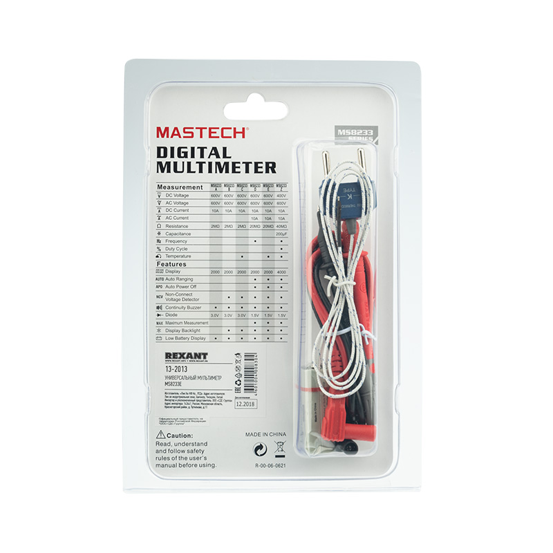 Сопротивление: 200 Ом/2 КОм/20 КОм/200 КОм (±0,8%+2), 2 МОм/20 МОм (±1,0%+2)