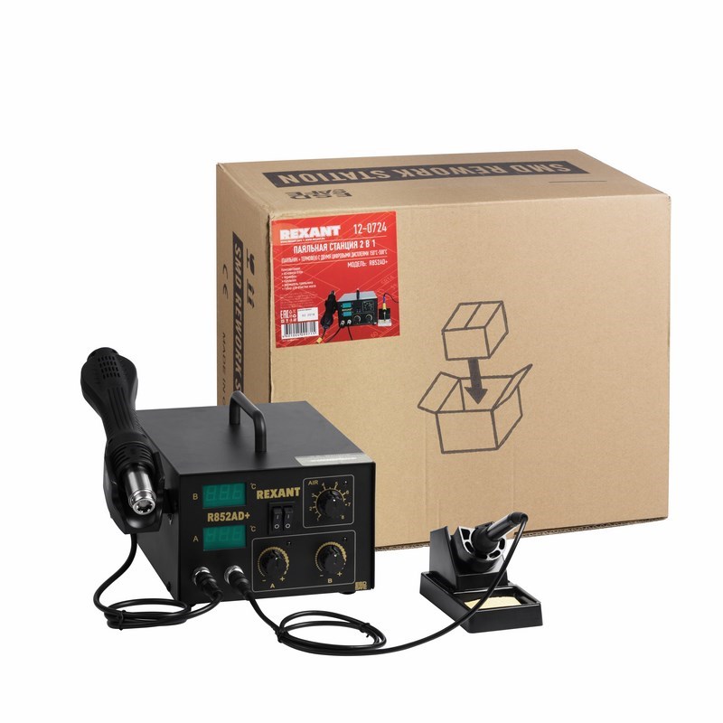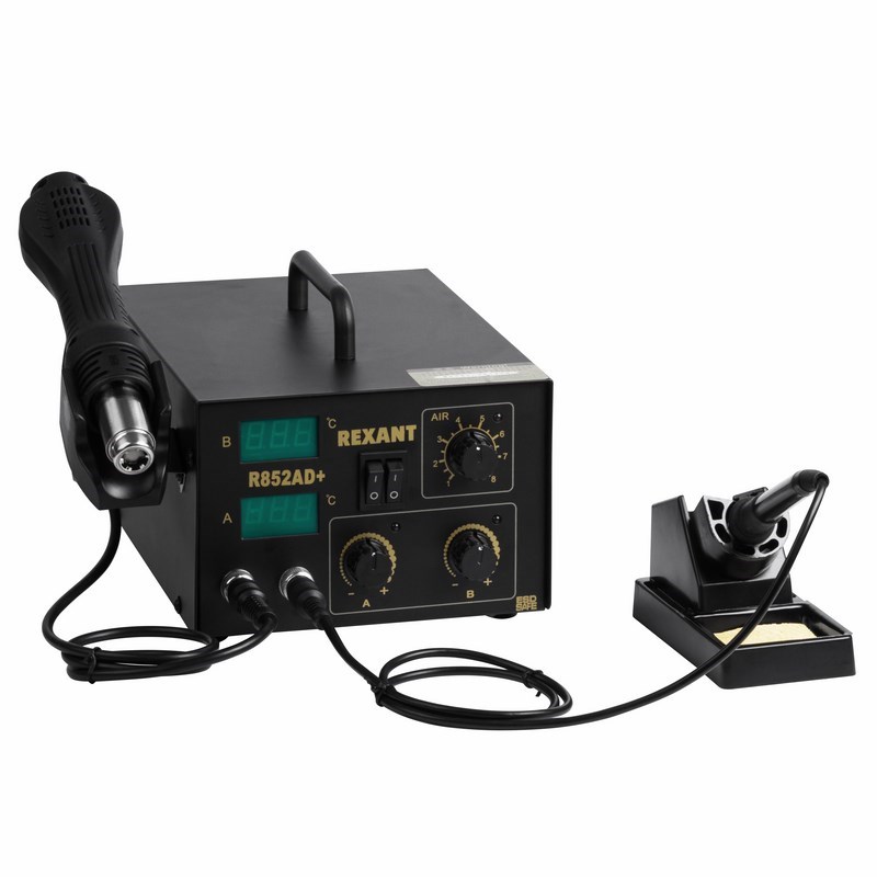 Назначение: Универсальная цифровая паяльная станция 2 в 1 с компрессорным феном и паяльником (R852AD+) применяется для демонтажа или пайки различных видов компонентов, таких как SOIC, PLCC, QFP, BGA и т. д.