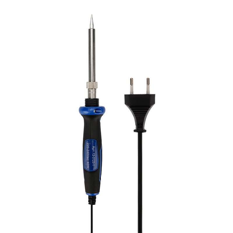 Назначение: Для ручного монтажа радиоэлементов. Его можно использовать как в домашних условиях, так и в профессиональных лабораториях. Паяльник выполнен с керамическим нагревательным элементом, поэтому нагревается быстрее чем нихромовый и при бережном отношении прослужит много долгих лет. Долговечное жало паяльника состоит из медного сердечника покрытого слоем электролитически осажденного железа. Рабочая часть жала электрохимически покрыта слоем олова (что обеспечивает облуживаемость), а остальная поверхность — хромирована. Такие жала могут при соблюдении ряда предосторожностей работать длительное время без разрушения. Напряжение питания 220-240 В 50/60 Гц. Потребляемая мощность 40 Вт. Длина провода 1,35 метра. Удобная эргономичная рукоятка выполнена из термостойкого пластика с резиновыми вставками, она сделает работу с инструментом легкой и приятной.