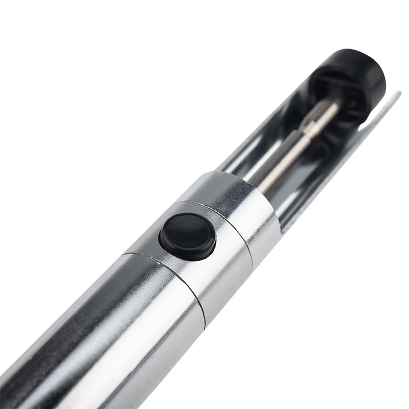 Корпус изготавливается из металла (алюминий) и легко разбирается для обслуживания (смазка и очистка). Забор припоя производится посредством антистатического наконечника (диаметр 3.2 мм), который выполнен из высокотемпературного тефлона.