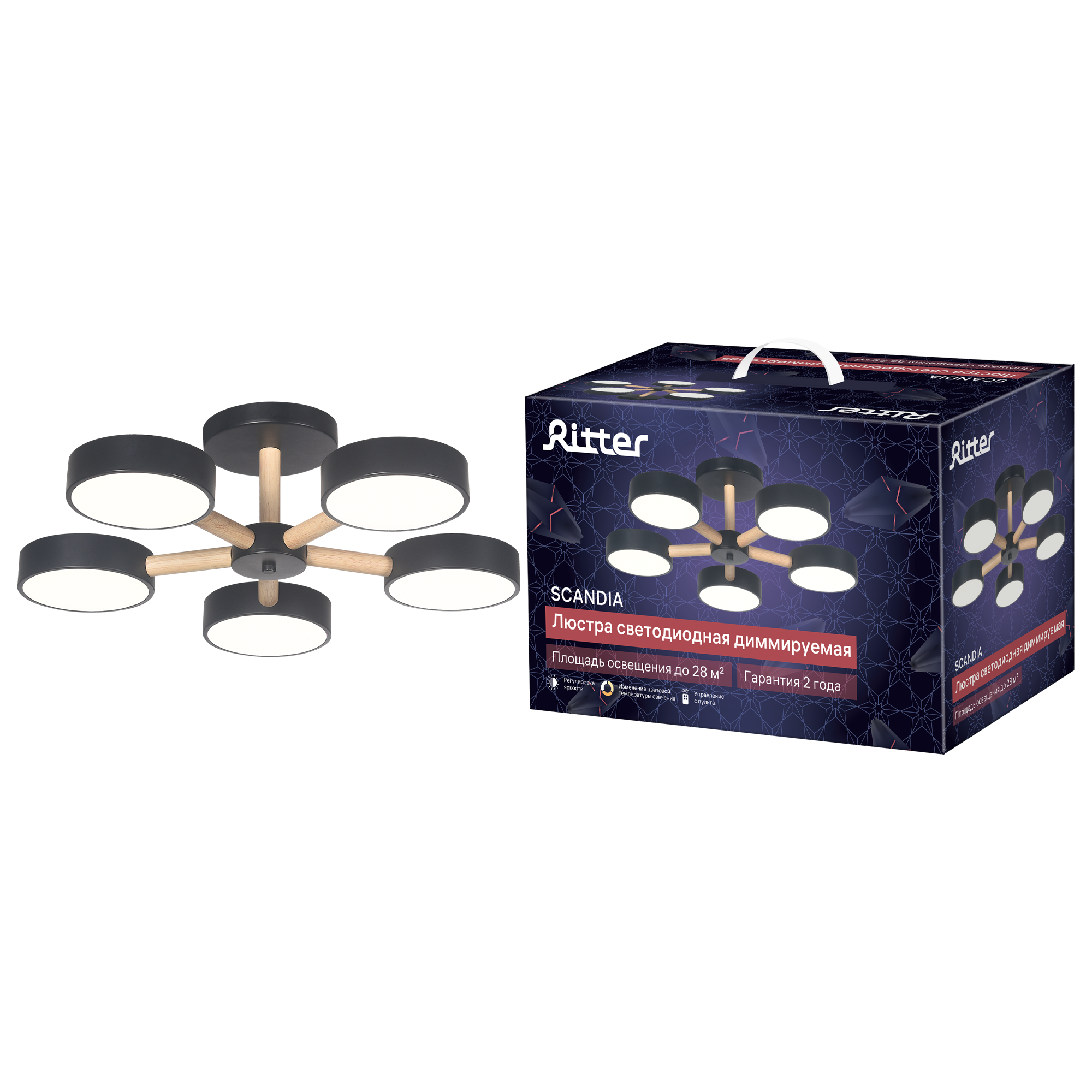 Светильник светодиодный "Ritter" Scandia 75Вт управляемый,5600 Лм (пульт ДУ, 20м²) чёрный/дерево