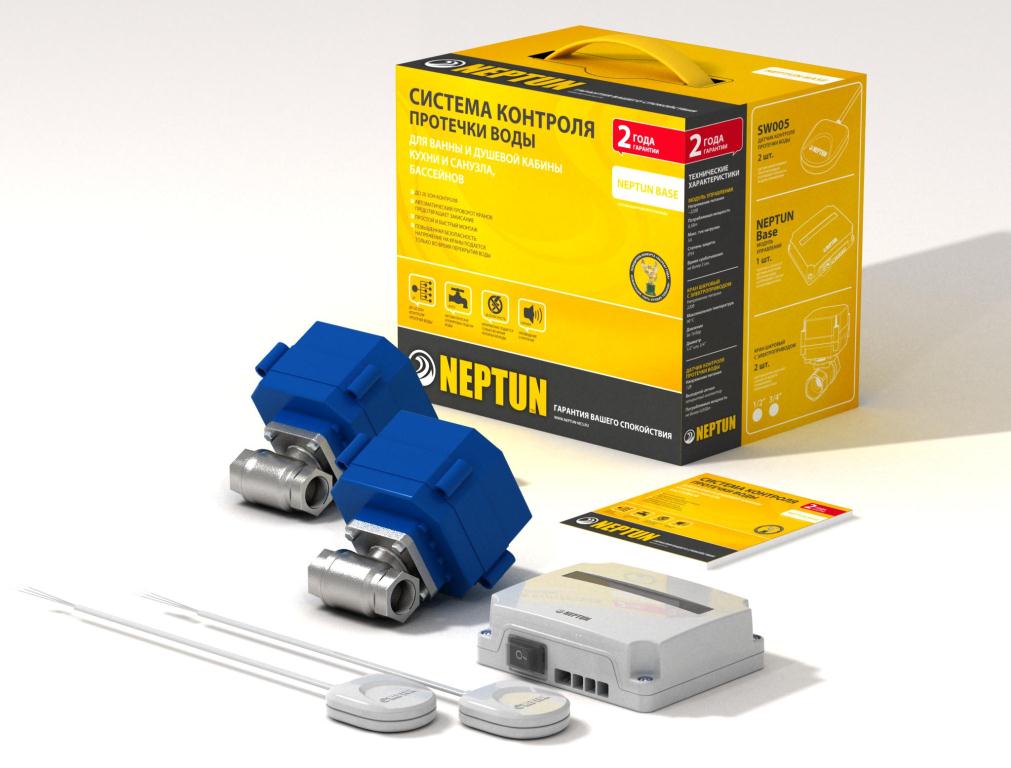 Система контроля протечки воды Neptun Base предназначена для своевременного обнаружения и локализации протечек воды в системе водоснабжения и отопления жилых домов, коттеджей, офисных зданий, магазинов. Система заблокирует подачу воды до устранения причин протечки и проинформирует о возникшей аварии звуковым и световым сигналами.