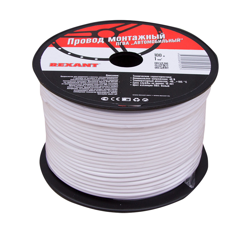 Провод ПГВА REXANT предназначен для гибкого соединения автотракторного электрооборудования и приборов с номинальным напряжением до 48 В, изготавливается для автомобильной проводки и элементов питания и управления. Состоит из многожильной токопроводящей жилы с поливинилхлоридной изоляцией.