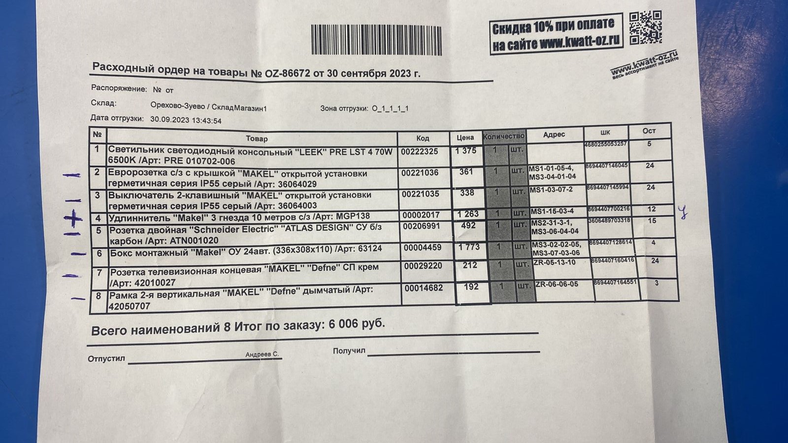 Инструменты, контрольно-измерительные приборы, расходные материалы