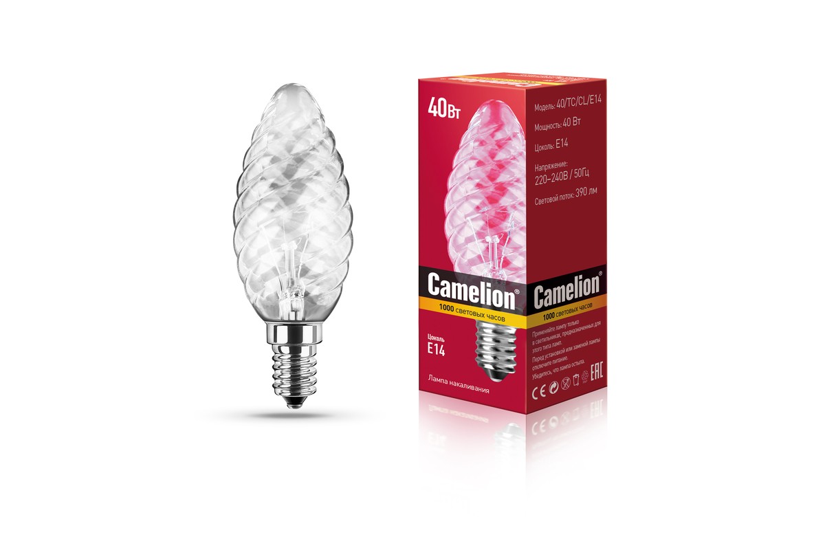 Лампа декоративная "Сamelion" свеча витая E14 40Вт 390lm 40/TC/CL/E14