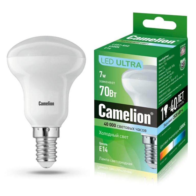 Лампа светодиодная "Camelion" R50 Е14 7Вт 3000К (жёлтый) LED7-R50/830/E14