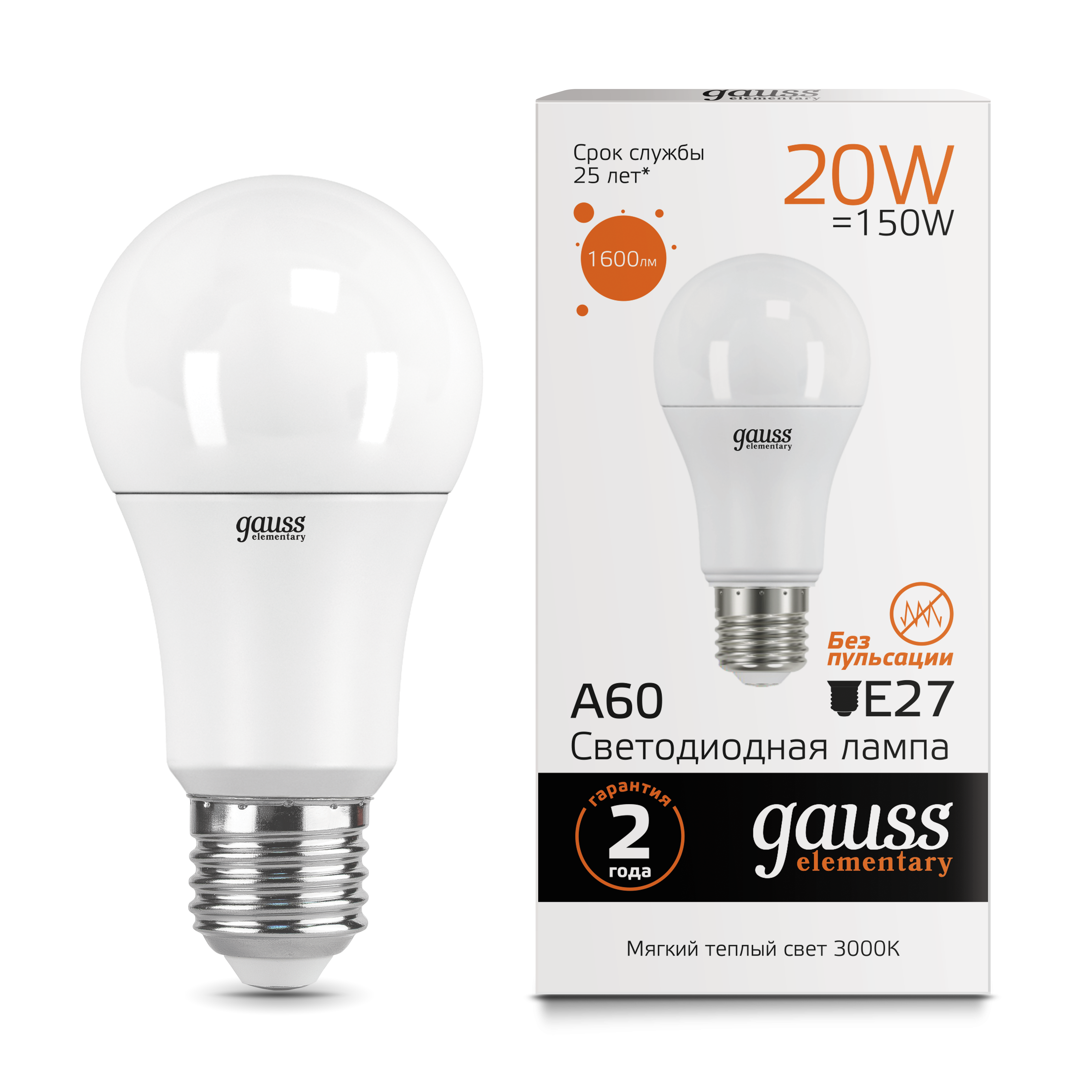 Лампа светодиодная "Gauss" Elementary груша E27 20W A60 1520lm 3000K
