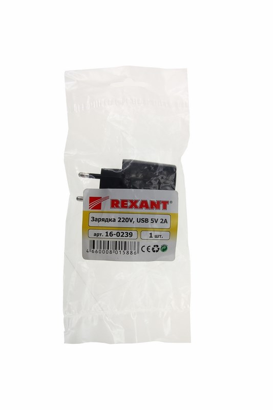 Сетевое зарядное устройство "REXANT" USB 220 V (СЗУ) (5 V, 1000 mA) черное