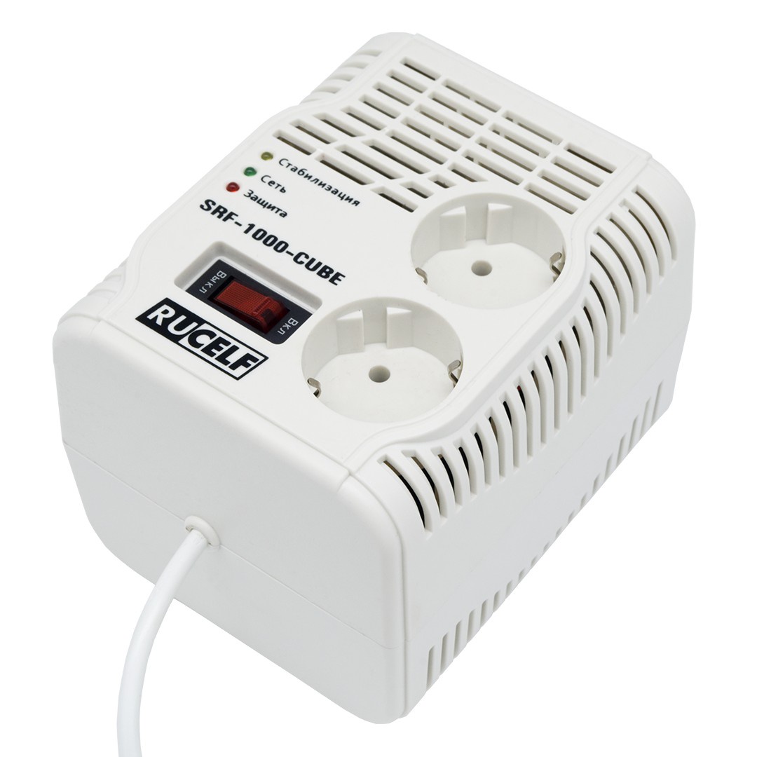 Стабилизатор "RUCELF" релейный SRF-1000-CUBE (450ВА/360Вт, диапазон 145-280В, точность 220+/-6%)