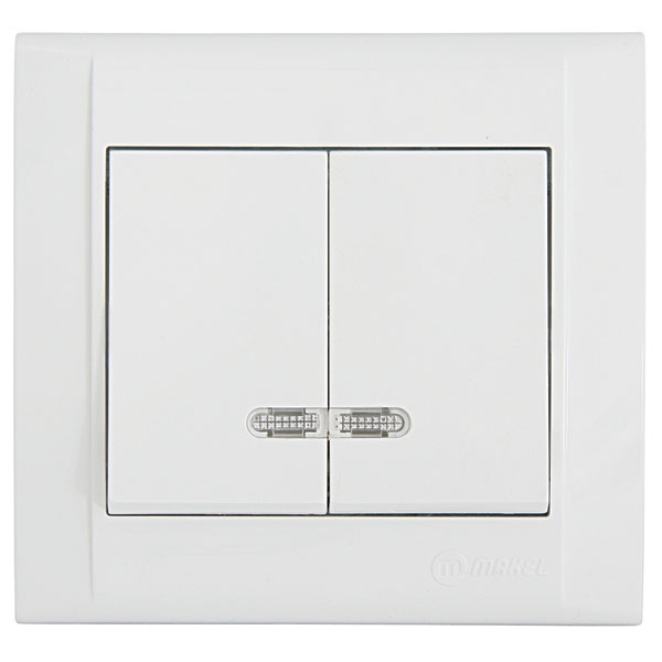 Выключатель 2-клавишный с подсветкой "MAKEL" "Defne" 2СП белый