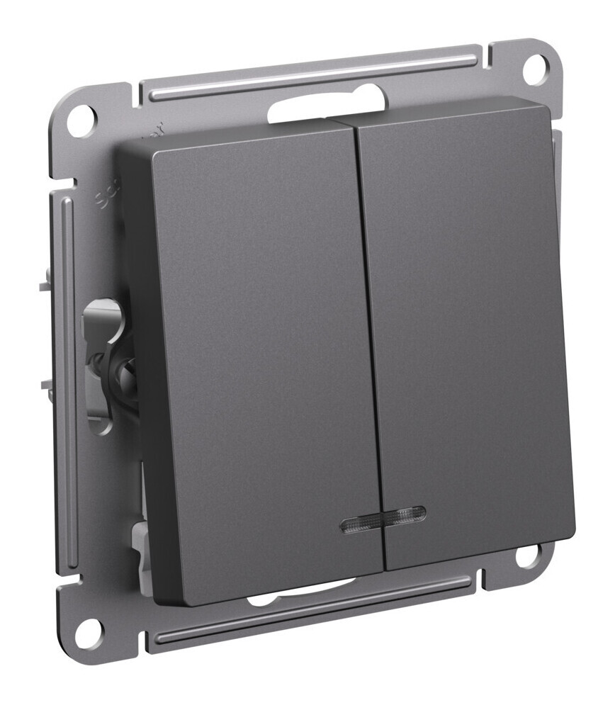Механизм выключателя 2-клавишного с подсветкой "Schneider Electric" "ATLAS DESIGN" СУ базальт