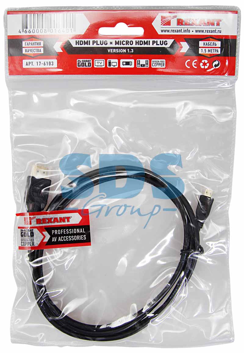 Назначение: Для передачи цифровых видеоданных высокого разрешения и многоканальных цифровых аудиосигналов с защитой от копирования. Используется для подключения во многих устройствах нового поколения: телевизионных аппаратах, компьютерах и ноутбуках, в мобильных телефонах и планшетах, мультимедийных проигрывателях, игровых консолях, видеокамерах и других видеоустройствах имеющих соответствующий разъём. Особенность данного шнура в том, что есть возможность подключения устройств с разными разъемами. С одной стороны шнура расположен штекер разъема HDMI, а с другой штекер разъема micro HDMI. Для производства жил используется только первичная, технически чистая медь (99%). Коннекторы изготовлены из качественного, легкого и прочного пластика. На контакты разъемов нанесен слой золота по технологии вакуумного напыления, обеспечивающий повышение качественных показателей изображения и звука, а также отсутствие помех при передаче сигналов. Длина шнура составляет 1.5 метра.
